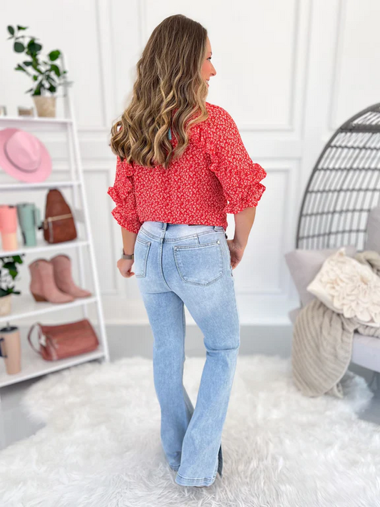 Kickin' It - Tummy Control Side Slit Slim Bootcut Jeans
